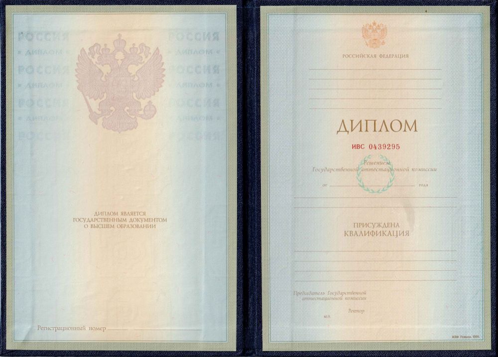 • Дополнительно: К диплому о высшем образовании специалиста 1997-2003 гг. прилагается: корочка, бланк диплома заполненный и имеет мокрую печать, Вкладыш (приложение к диплому).